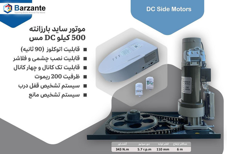 ویژگیهای اصلی موتور ساید 500 کیلوگرم DC بارزانته