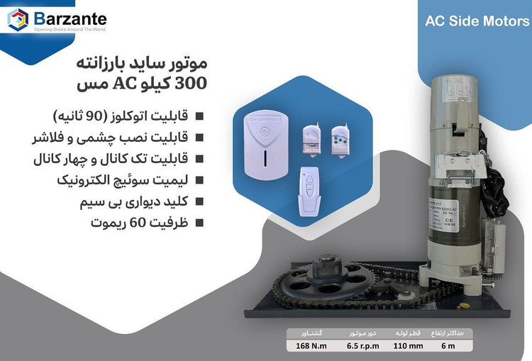 موتور ساید کرکره برقی بارزانته ۳۰۰ کیلو سیم پیچ مس فول آپشن ac