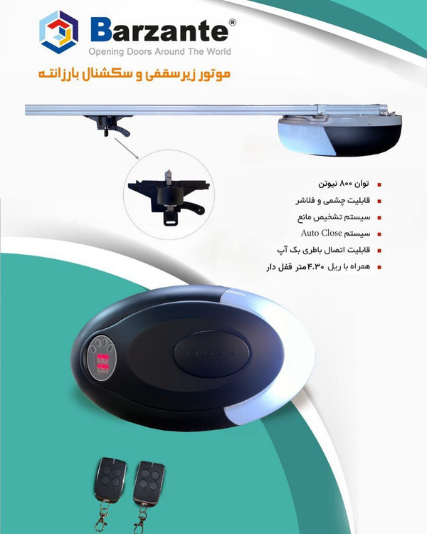 موتور سقفی وسکشنال بارزانته قابلیت چشمی وفلاشر قابلیت تشخیص مانع سیستم auto close همراه با ریل ۴/۳۰ متر